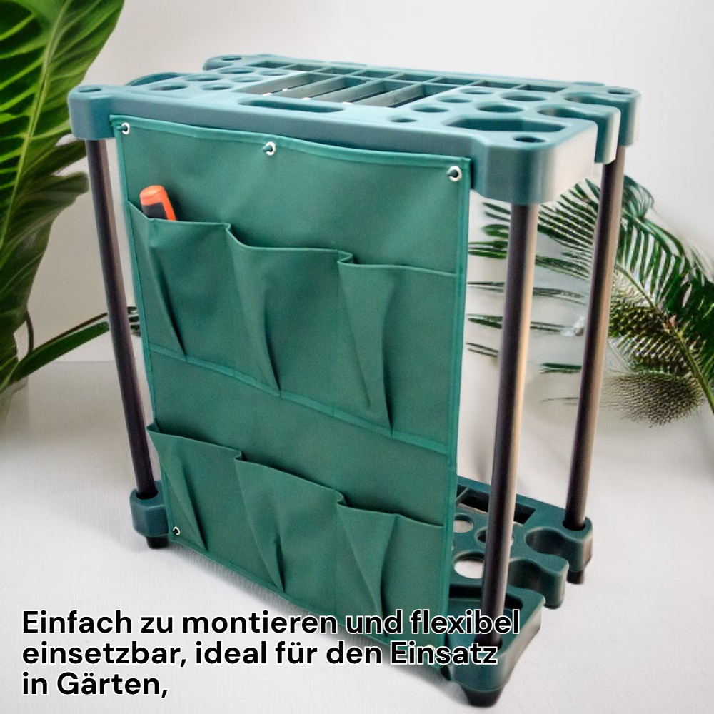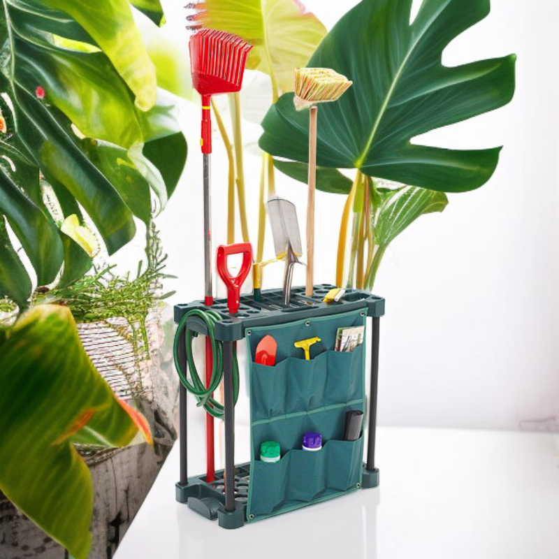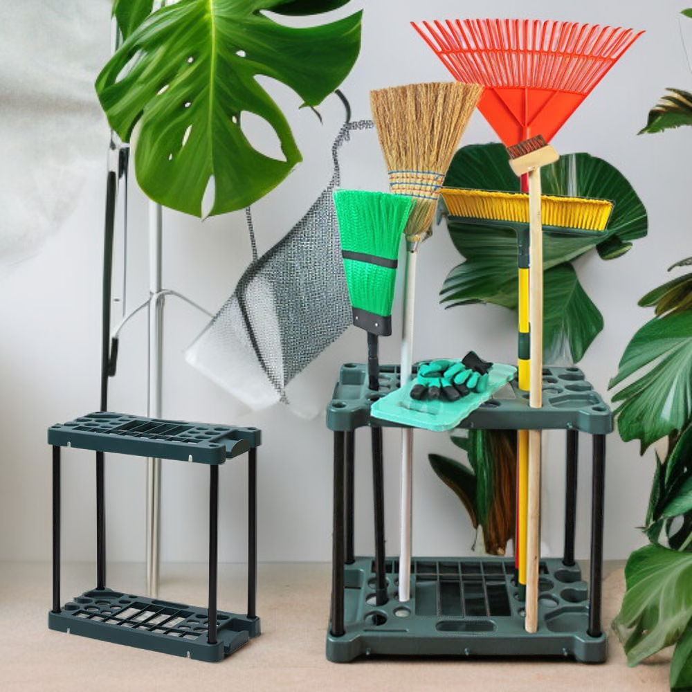 ● Vielseitiger Aufbewahrungsständer bietet ausreichend Platz für verschiedene Garten- und Landwirtschaftswerkzeuge und sorgt für Ordnung im Gartenbereich. ● Robuste und langlebige Konstruktion aus hochwertigen Materialien garantiert eine langfristige Nutzung und hohe Belastbarkeit, auch bei schweren Geräten. ● Einfach zu montieren und flexibel einsetzbar, ideal für den Einsatz in Gärten, Garagen oder Werkstätten zur optimalen Raumausnutzung. ● Durch das offene Design sind alle Werkzeuge jederzeit griffbereit und leicht zugänglich, was die Gartenarbeit effizienter und angenehmer macht. ● Modernes und platzsparendes Design fügt sich harmonisch in jede Umgebung ein und hilft, den Arbeitsbereich stets ordentlich und übersichtlich zu halten.